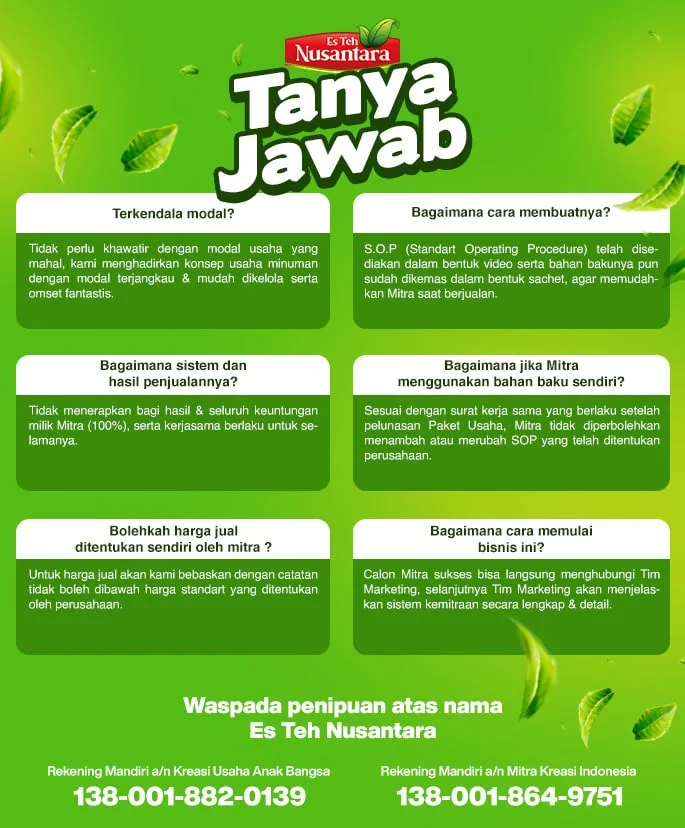 Es Teh Nusantara – Franchise Waralaba Minuman Teh Kekinian Yang Bisa Bikin Kamu Penghasilan Tambahan Berlimpah Tanpa Batas…!!!